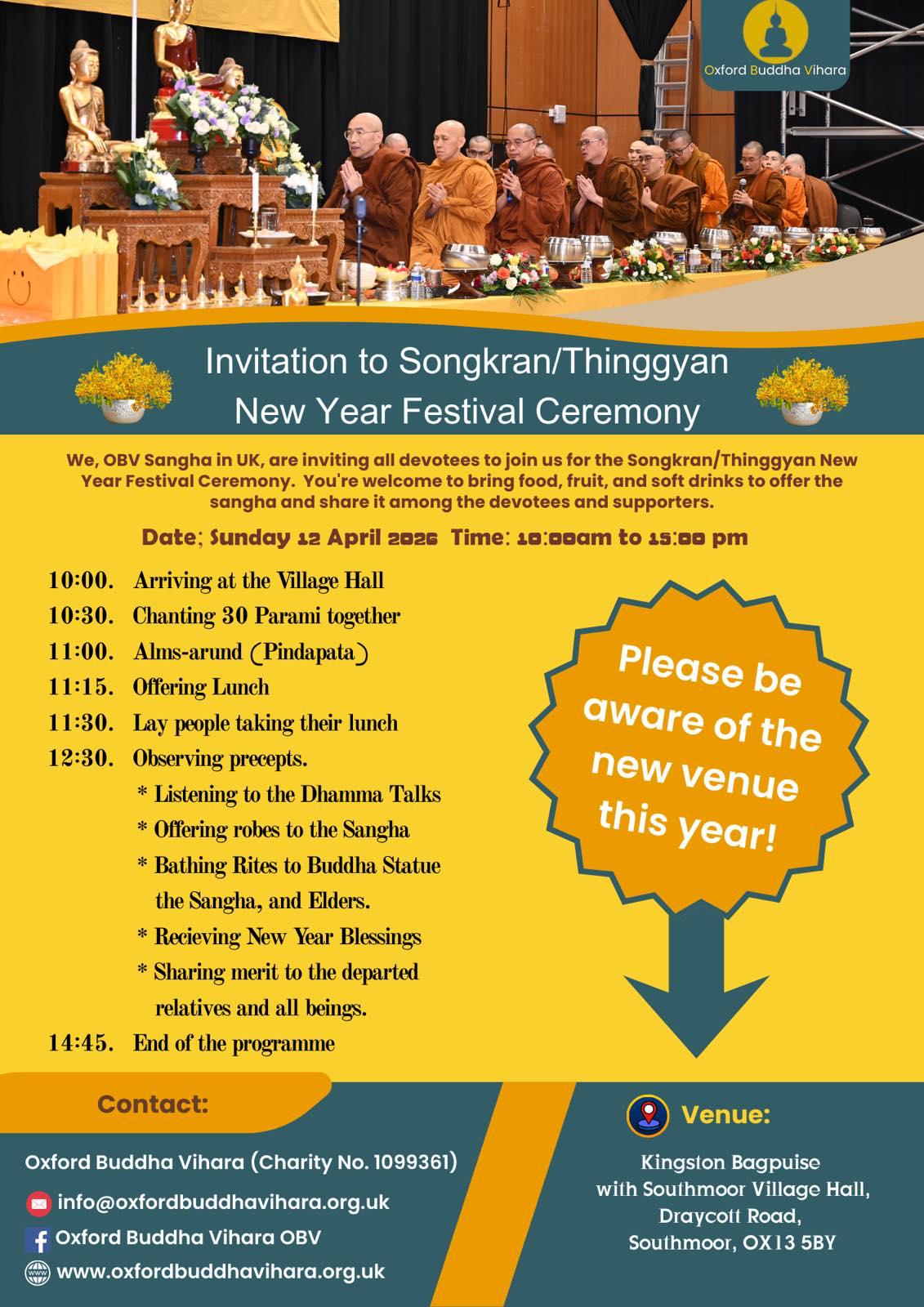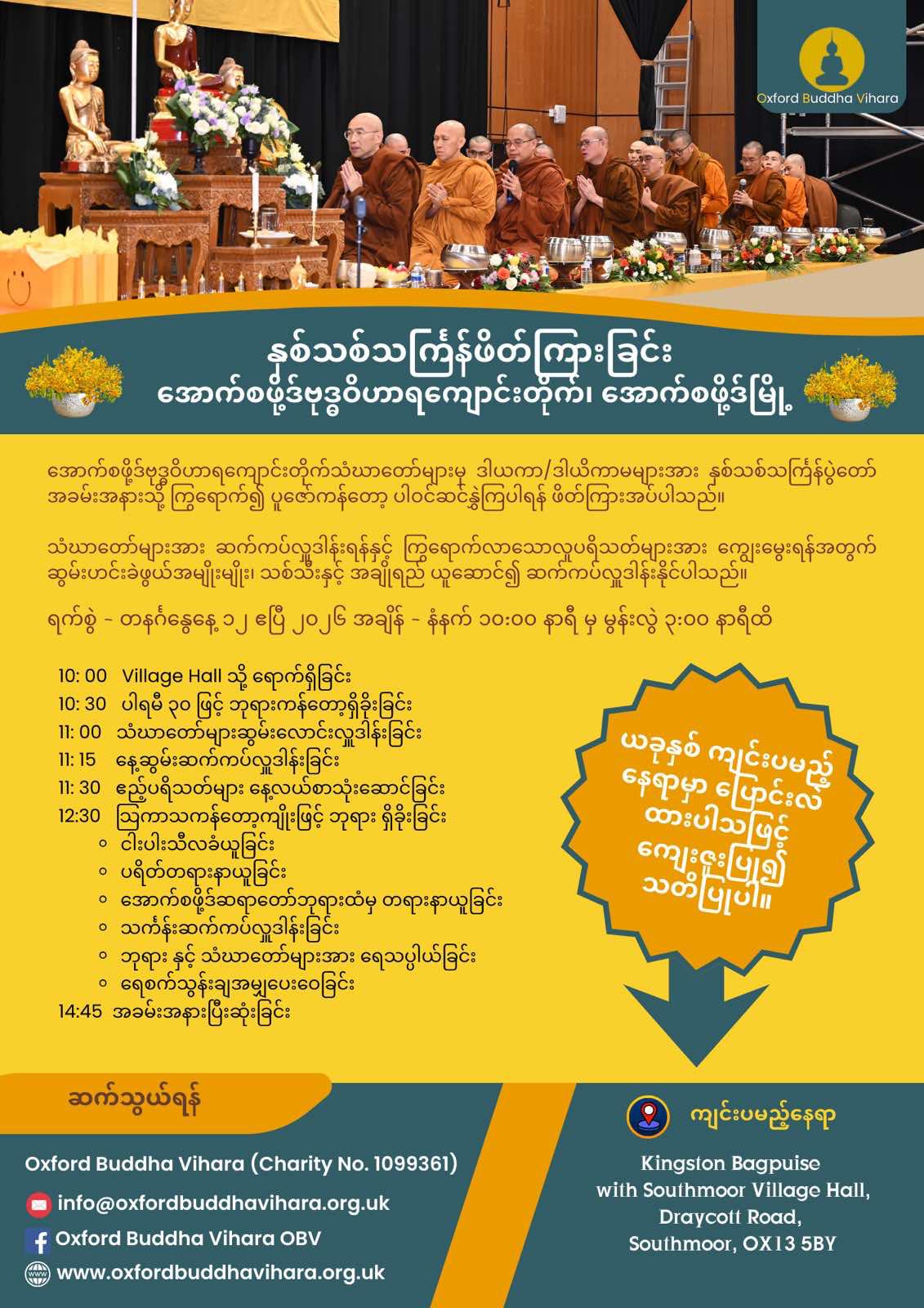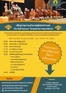 To celebrate the occasion this year, the Oxford Buddha Vihara will be holding a merit-making and blessing ceremony for the Buddhist community at Kingston Bagpuise with Southmoor Village Hall.